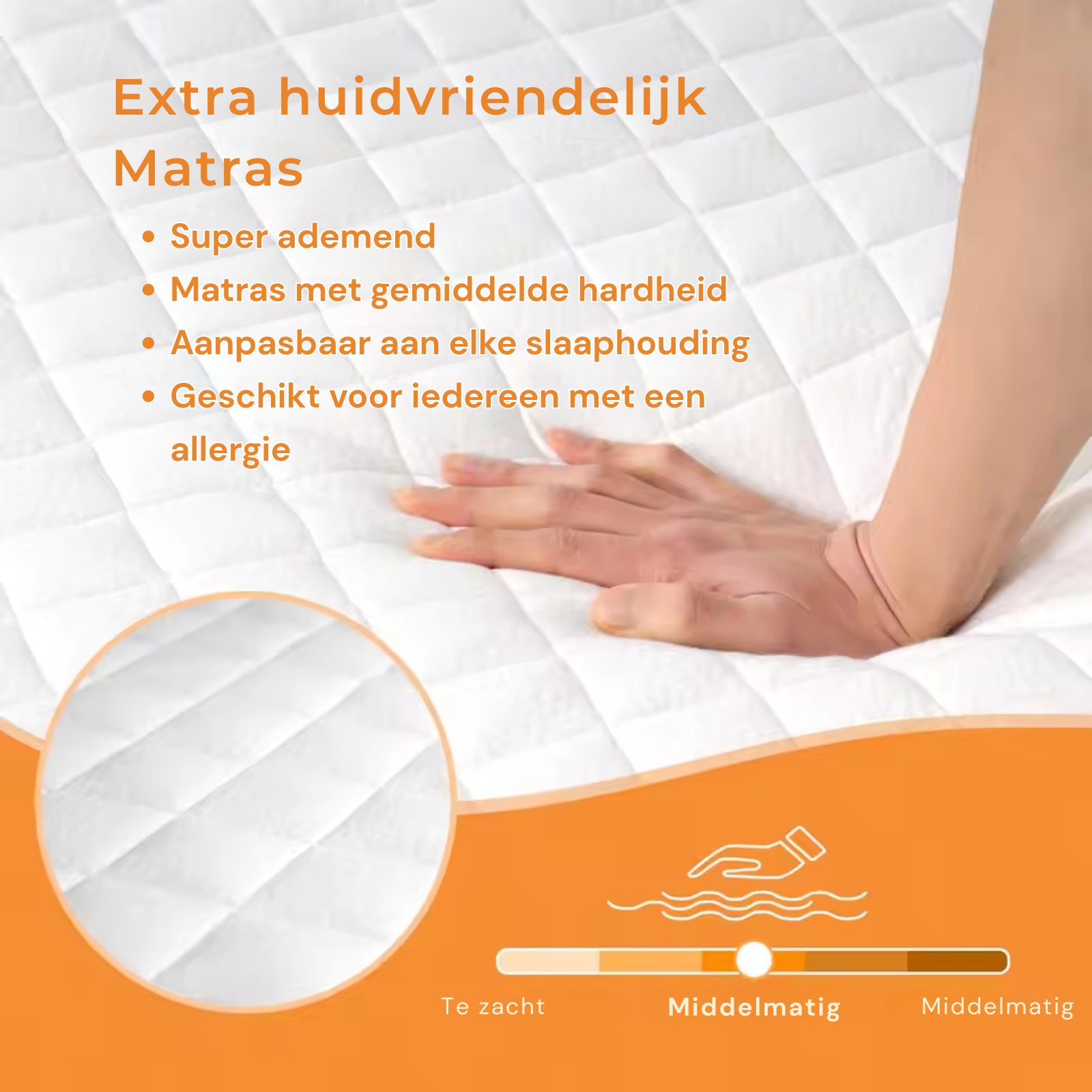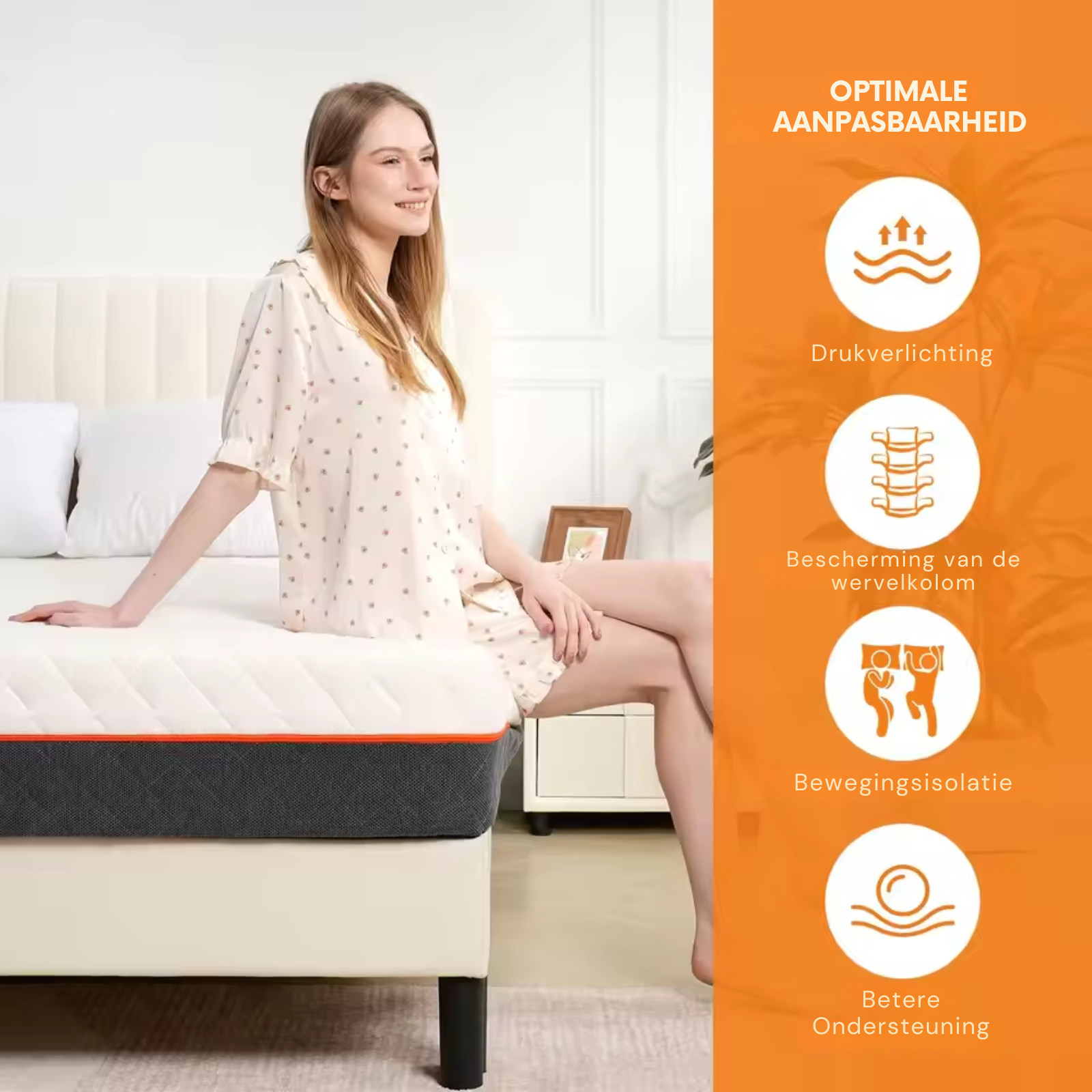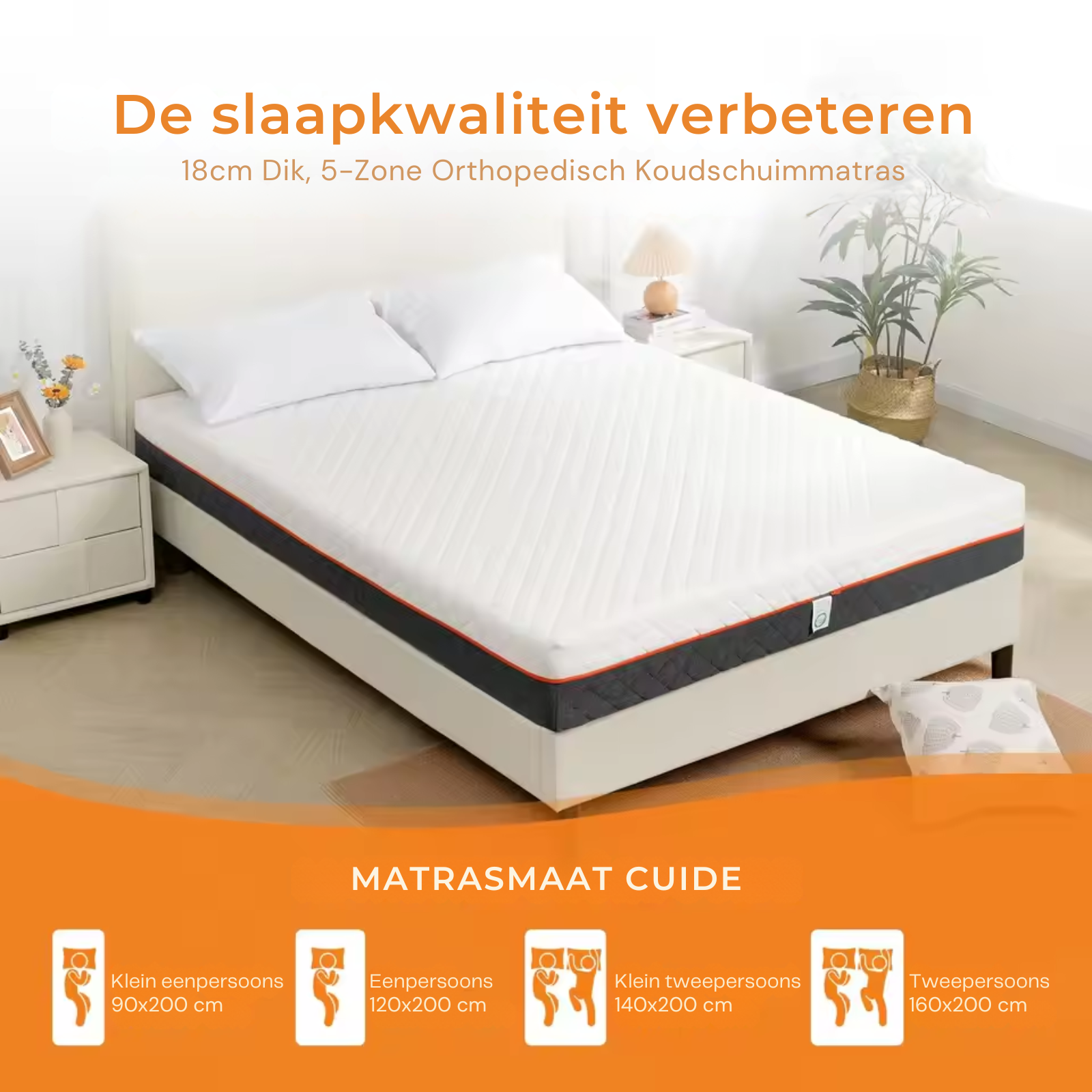 Ten 18-centymetrowy materac z zimnej pianki oferuje idealną równowagę między komfortem a podparciem. Dzięki ortopedycznej, 5-strefowej konstrukcji Twoje ciało otrzymuje optymalne rozłożenie nacisku i wsparcie podczas snu. Oddychający materiał zapewnia świeże środowisko snu i posiada certyfikat Eco-Tex 100 .