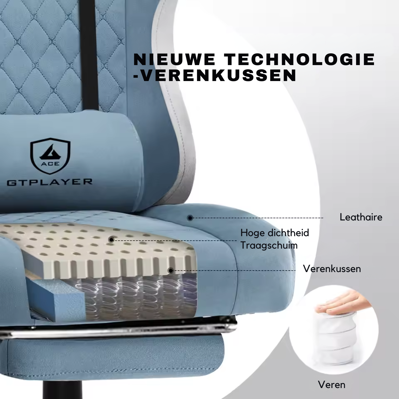 Przenieś swoją pracę lub grę na wyższy poziom dzięki temu ergonomicznemu fotelowi do gier . Siedzisko z kieszeniowymi sprężynami zapewnia długotrwały komfort, a regulowane podłokietniki i chowany podnóżek zapewniają optymalne podparcie. Dzięki wysokiemu oparciu możesz pracować lub grać godzinami bez zmęczenia. Idealne dla zapalonych graczy i osób pracujących w domu, które chcą w pełni wykorzystać swój zestaw.