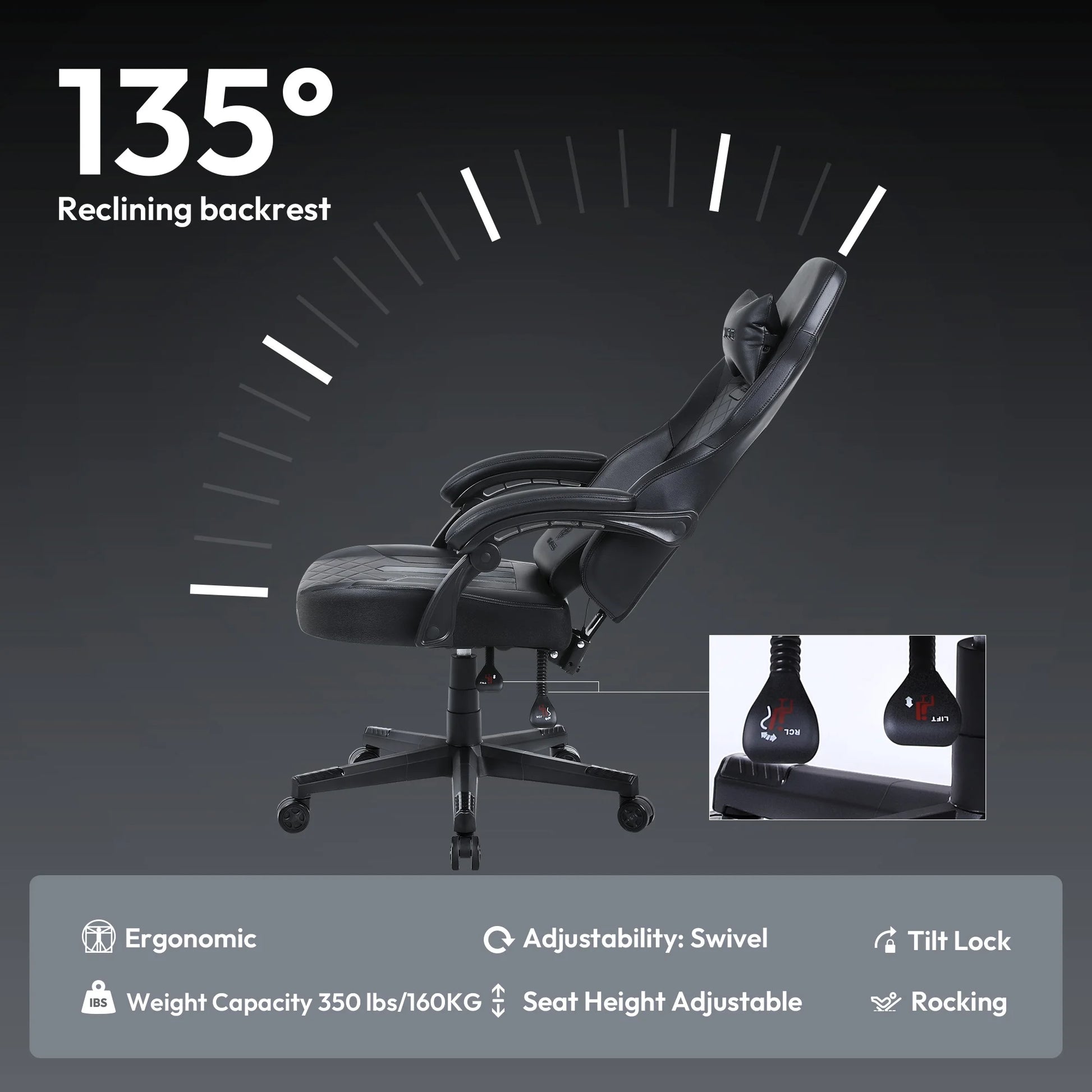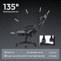 Ten regulowany fotel gamingowy łączy ergonomiczną konstrukcję z siedziskiem ze sprężynami kieszeniowymi i wysokim oparciem, zapewniając najwyższy komfort podczas intensywnych sesji grania lub długich dni pracy. Wykończony wytrzymałą skórą , wytrzymuje obciążenie do 158 kg (350 funtów) — idealny do codziennego użytku przy biurku lub w zestawie gamingowym.
