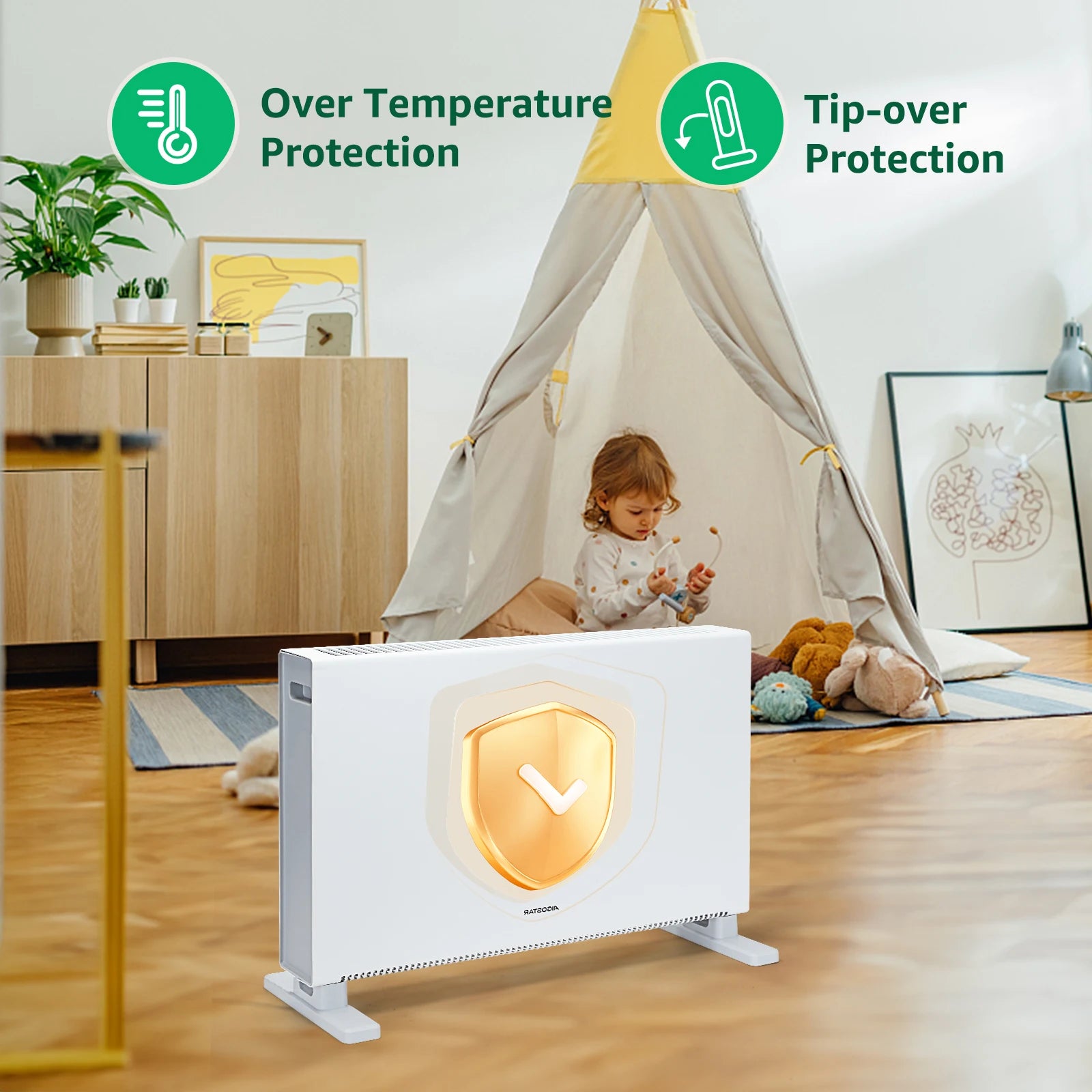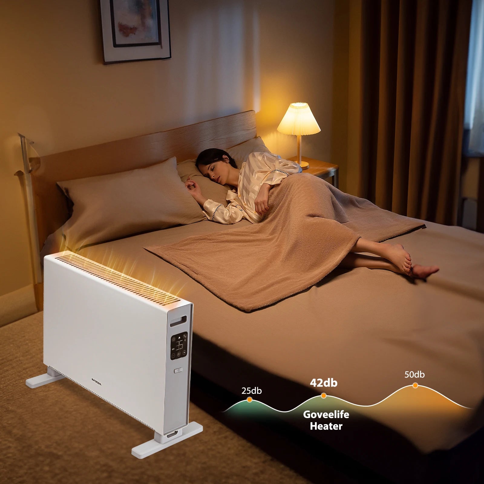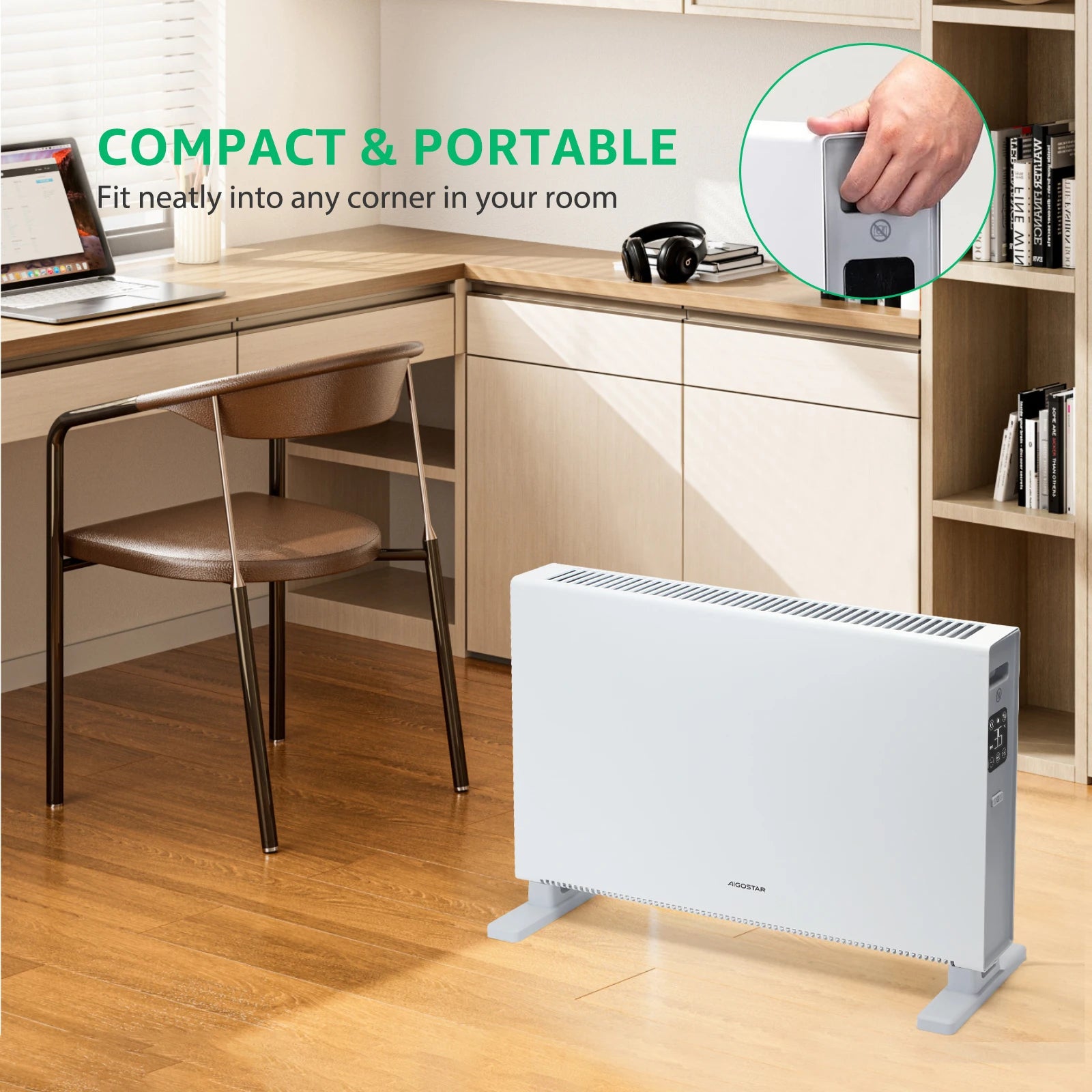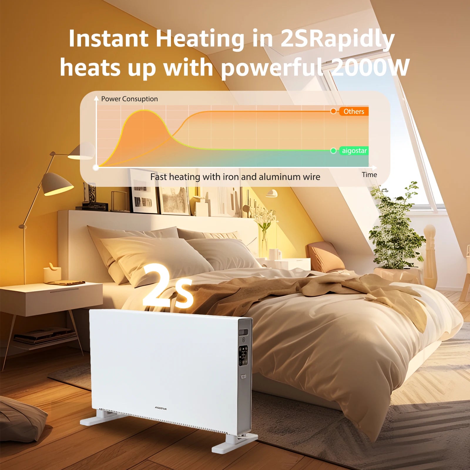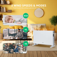 Ten grzejnik konwekcyjny o mocy 2000 W szybko i efektywnie ogrzewa pomieszczenia o powierzchni 20–25 m². Dzięki trzem ustawieniom temperatury i trybowi Eco możesz łatwo wybrać żądaną temperaturę. Grzejnik pracuje niezwykle cicho, a 24-godzinny timer i pilot zdalnego sterowania zapewniają optymalną wygodę obsługi.
