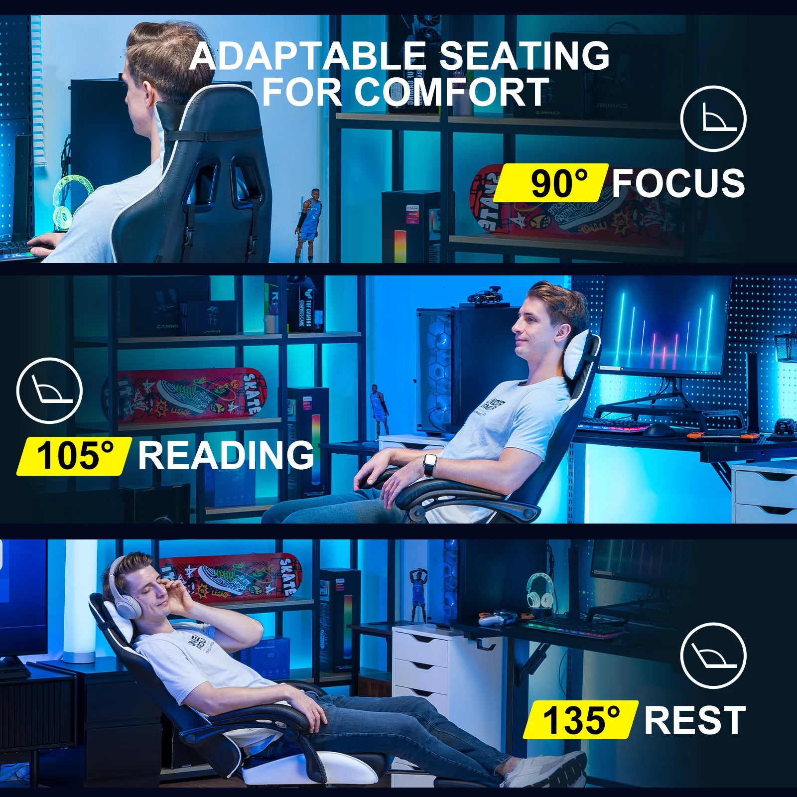Ten ergonomiczny fotel gamingowy został zaprojektowany z myślą o najwyższym komforcie podczas grania i pracy. Wyposażony w podnóżek i regulowane poduszki , zapewnia optymalne podparcie pleców i szyi. Połączenie funkcjonalności i stylu sprawia, że fotel ten jest idealnym wyborem zarówno dla graczy, jak i osób pracujących w domu.