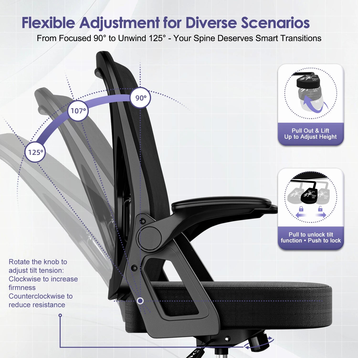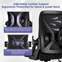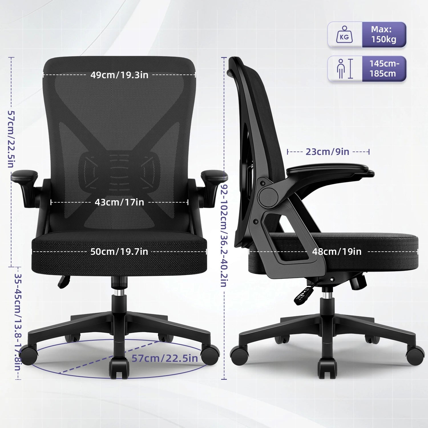 To ergonomiczne To krzesło biurowe z przewiewnym, siatkowym oparciem i regulowaną wysokością siedziska zostało zaprojektowane z myślą o optymalnym podparciu podczas długich dni pracy. Dzięki składanym podłokietnikom z łatwością zmieści się pod każdym biurkiem. Idealne do domowego biura lub przestrzeni roboczej, z inteligentnymi funkcjami zwiększającymi komfort i produktywność.